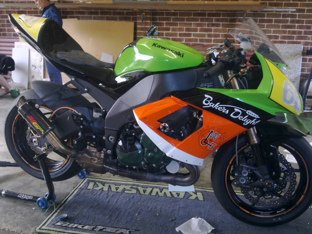 fairings from Madkaw's, Wattie's and My bike have been removed and taken down to my brother who is now one of our sponsors (Sydney Sportsbike Body Repairs). Work has started on all bikes.