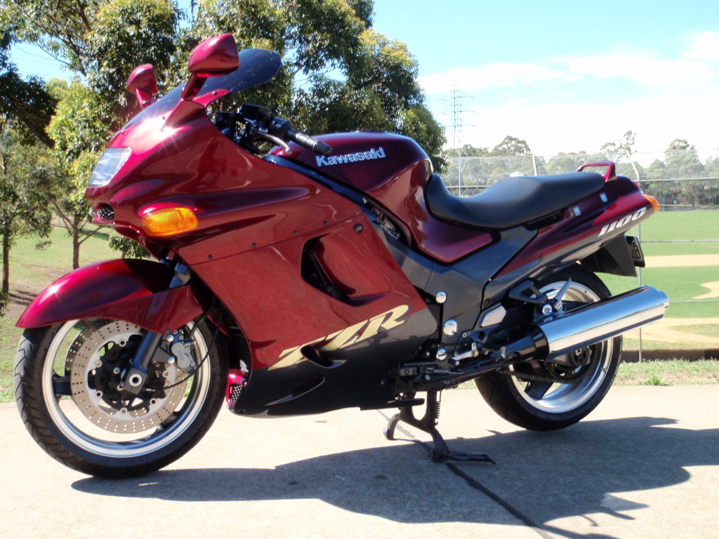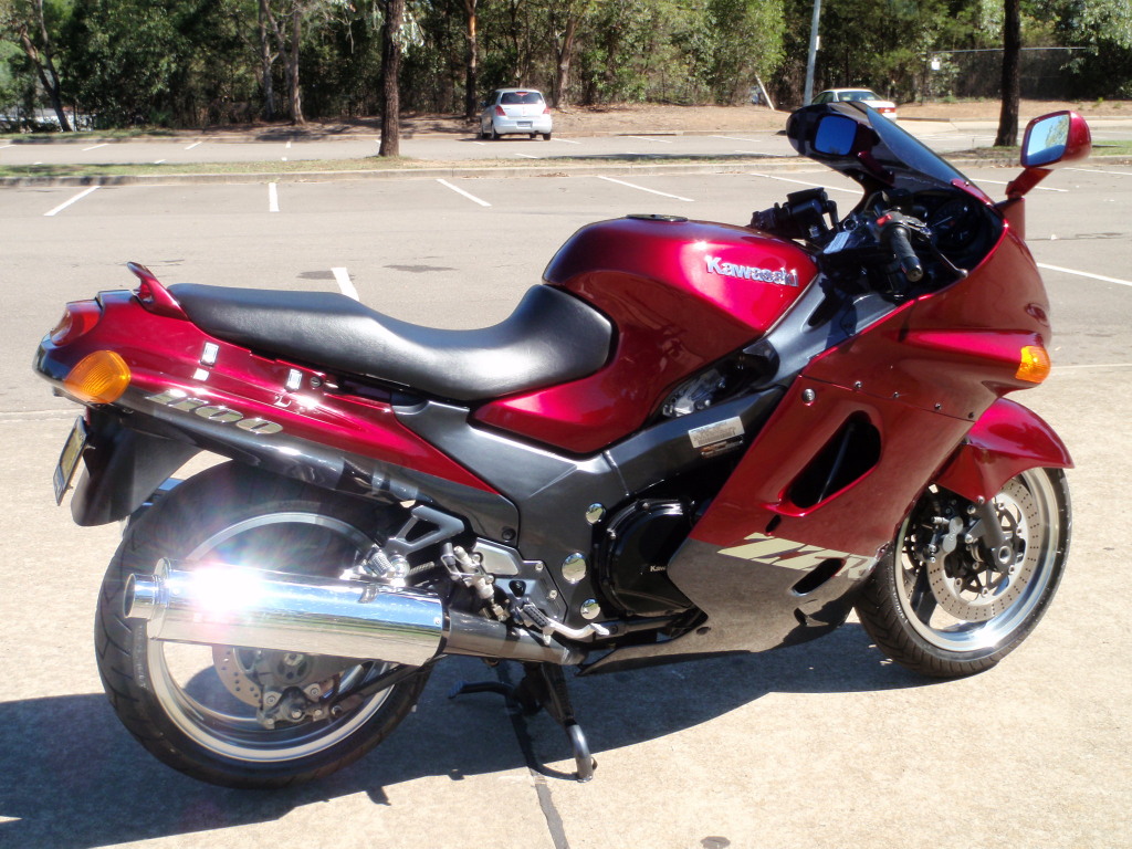 Hadn't had a bike for a long time, and had been admiring the ZZR 1100's through the years and when this one came up I couldn't let it go. It is a Dec 1999 model with only 5200 klms. It apparently sat in some ones garage for years not being used. Kelens at Penrith got it and from what I understand basically stripped it down and rebuilt it. Has new tank and a new set of carbies and has not missed a beat!