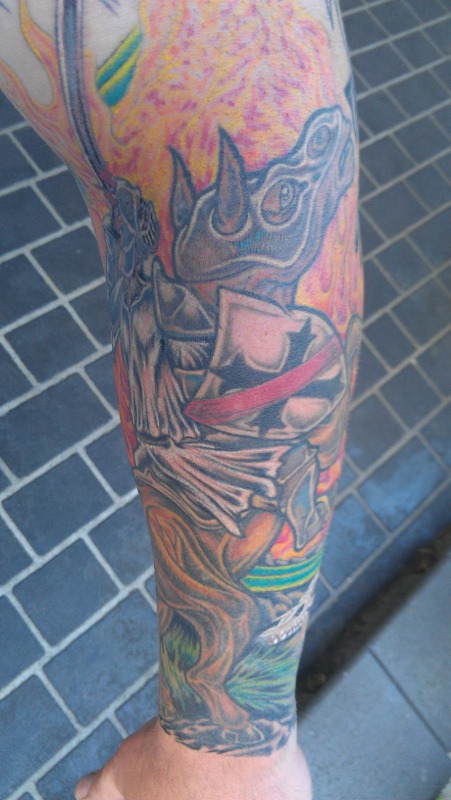 I have included a pic of my arm to help explain the significance, for those that might not understand. There may have been a suggestion for pink and purple colours for the horse, when it was just an outline.