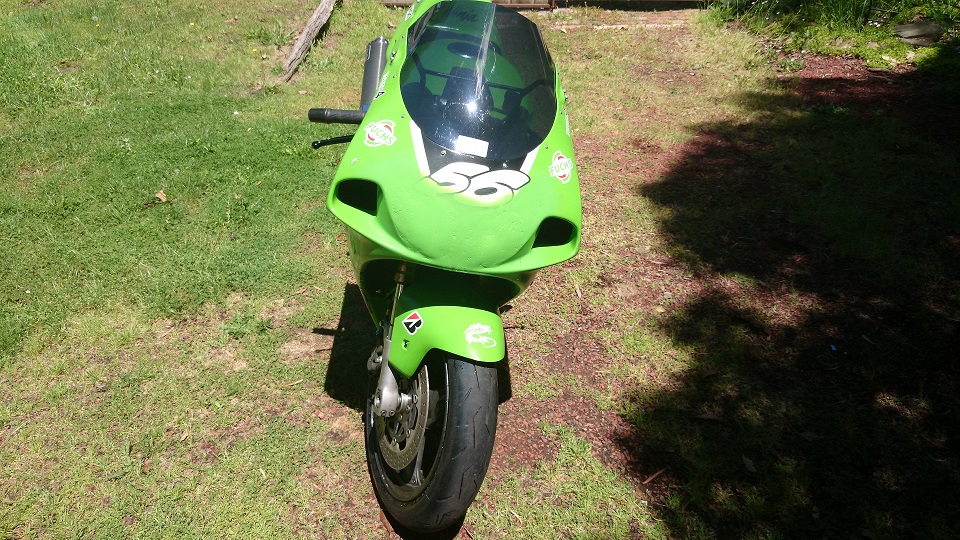 Waiting on the tank and lower side cowl " Kawasaki " decals , clear double bubble screen and the race
