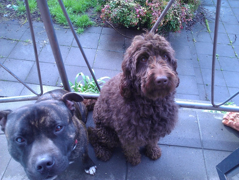 Here is the pair that we had a few years back,sadly both departed.I think there is a pattern here, Mals dogs Staffies Kazz anything that is fluffy