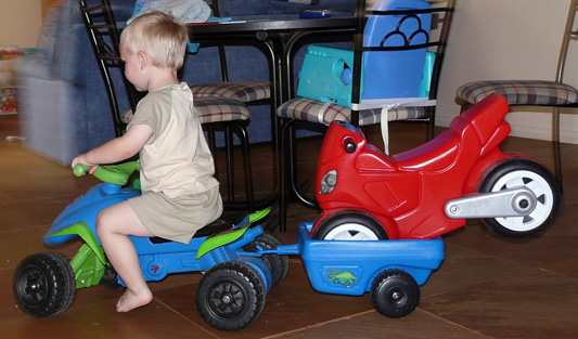 Wait until he starts putting it in a trailer to tow around like Dad.