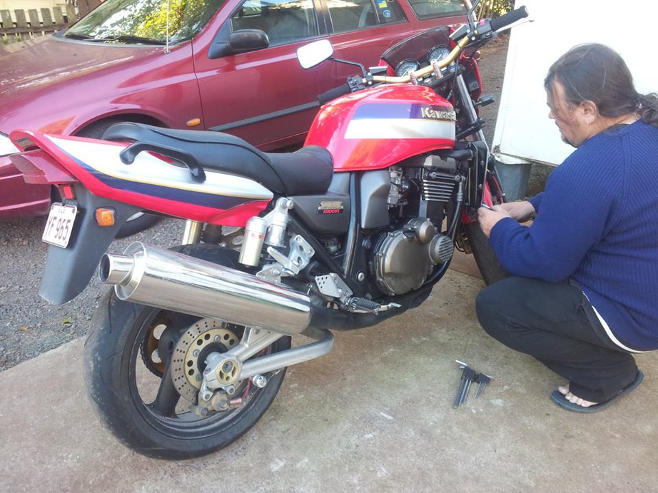 Eduardo is looking more like Eddie every day. Got red bodywork off to repaint. Waiting for headlight fairing to com from US to then paint green.