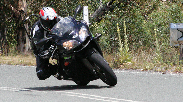 thats a great shot ! He was also getting a bit *squirelly* out of this corner, due to the dip in the road...............so its front tyre off the deck, and rear tyre sliding..................