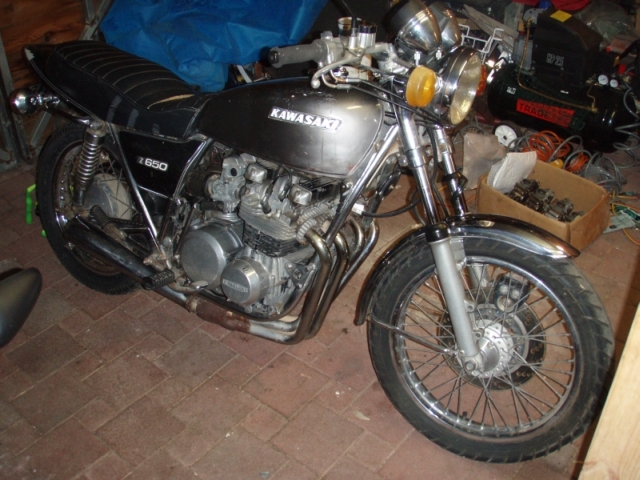 Well it had to happen eventually. I couldn't be the only member of the HCC-HTFU with only one bike in the shed. I couldn't be the only member of the HCC-HTFU that didn't have a bike from 3 decades ago. So here she is, although I haven't got a name for her yet. She's a 1976 Z650B1 that the previous owner has bored out to around 720cc. There's obviously a bit of work to be done to get her on the road again, including new air filters, new tyres, new rectifier and maybe battery, god knows what else....but there is plenty of potential there after a good clean up.