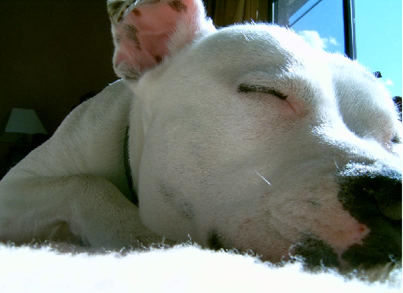 Axel hes an 8 year old staffordshire bull terrier. White with some brindle patches