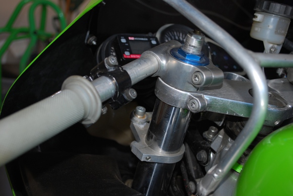 Fork height: Currently the clip ons are on top of the triple clamps with the top of the forks equal with the top of the clip ons (see attached picture). In regards to the amount of fork to have sticking out of the triple clamps, all that I've read and been told that this is about the right amount and move them up or down about 5mm depending if I want quicker or slower (for want of better words) steering. I presume the placement of the clip ons above or below the triple clamps is personal comfort and whether you want to feel 'on' the bike or 'in' the bike.