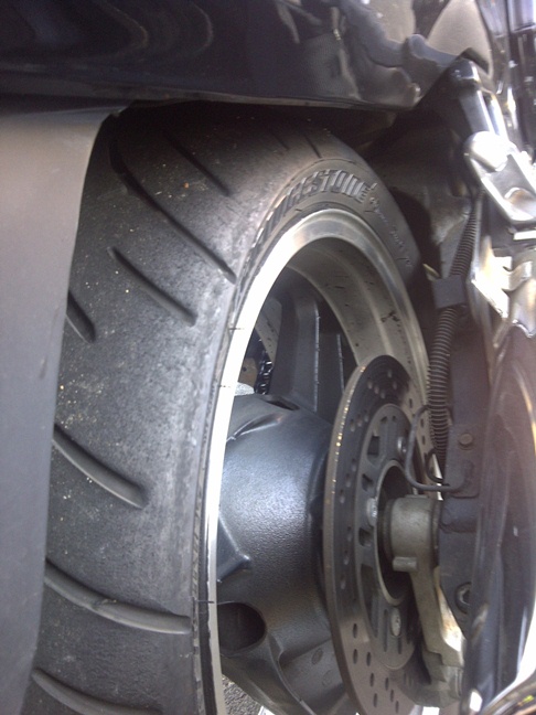 There's an R6 I see at work that's just as bad, very worn tyres with MASSIVE chicken strips....tyre ninja could write an essay in there