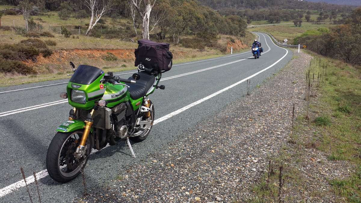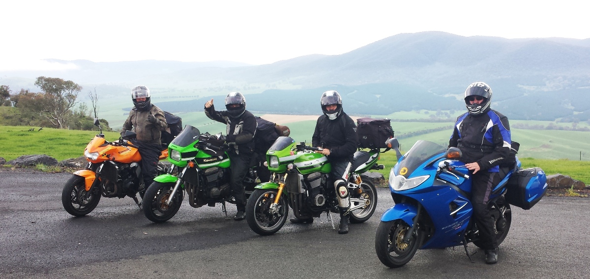 You can see how much gear Mick has on his ZRX. Other in the shot are Noel on the Trumpet and our "responsible adult" Bill on his Z750.