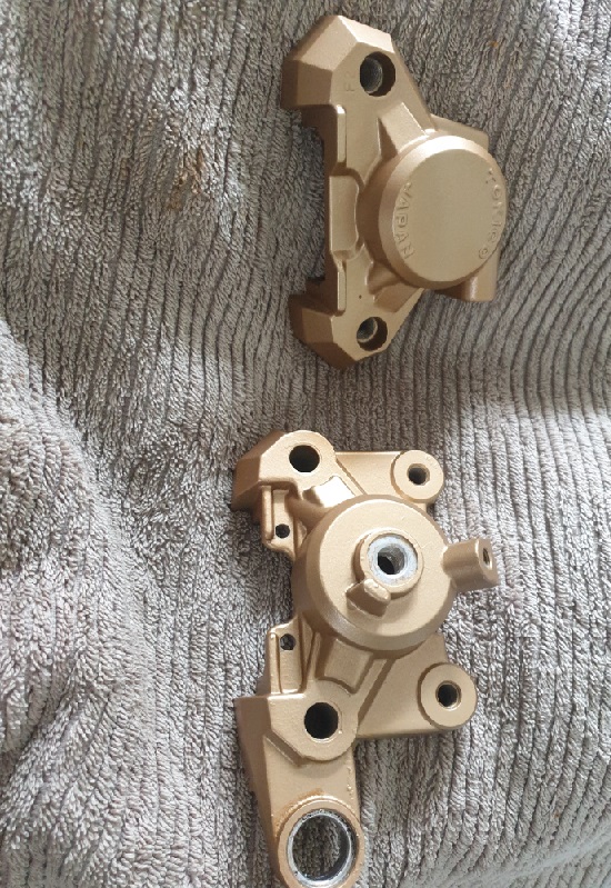 Both front and rear brakes were stripped down, bead blasted, rehoned, painted gold before being reassembled with all new OEM seals and bolts.