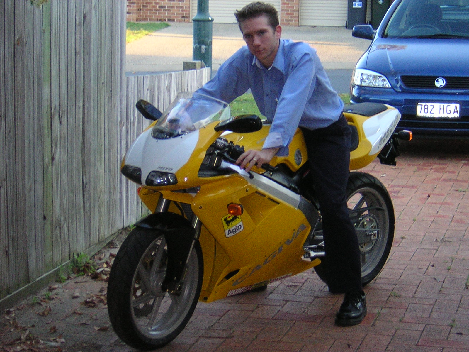 An old shot ... Gumby and the Packhorse on the way to Eastern Creek to see Dave Holdforth and for an Aussie Superbike School. Note oh so cool Rossi's MX boots. (edit - oops just found them, they are Sidis, with flat soles)