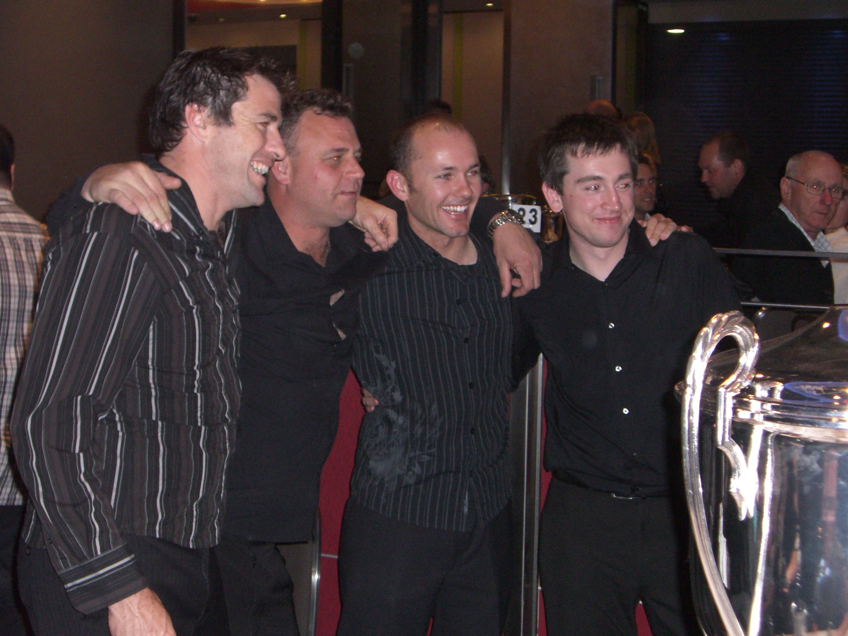Anyway, I'm back home now and will try again next time. Here are a couple of photos I took on Sunday night of two former Kawasaki riders. Josh took Jamie's trophy and practiced his speech as Superbike Champion. What a great kid he is!