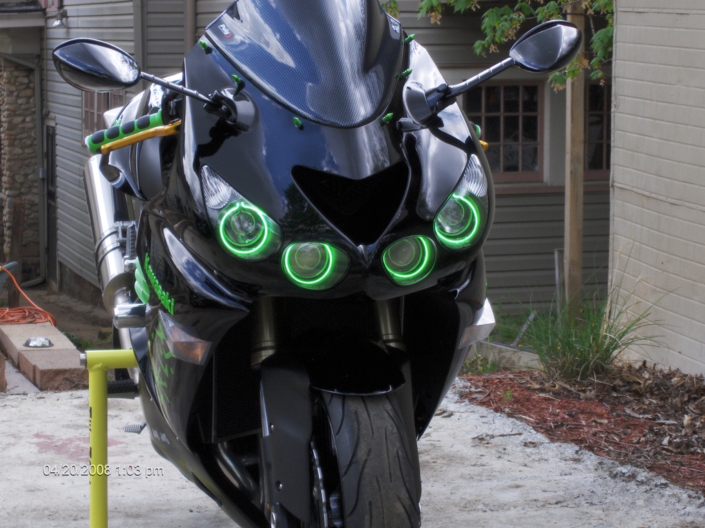 What I'm planning to do is have a strip of LED lights out of view on the inside of the left and right front fairings so @ night it glows out of the side. 8)