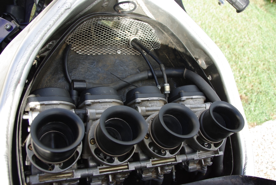 When I was changing the tank on the R1 last week, I thought I'd have a look inside the lovely fabricated airbox and imagine my surprise when I discovered that there was no air filter and one of the throttle cables is held in place with a zip tie :shock: