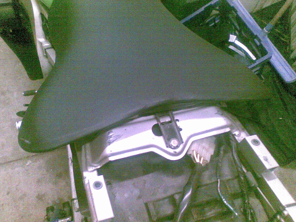 The black bracket just behind the fuse carrier is what the seat rests on and the holding bracket slots into the back of the seat at then attaches to the higher cross bracket high up in the front of the ducktail.