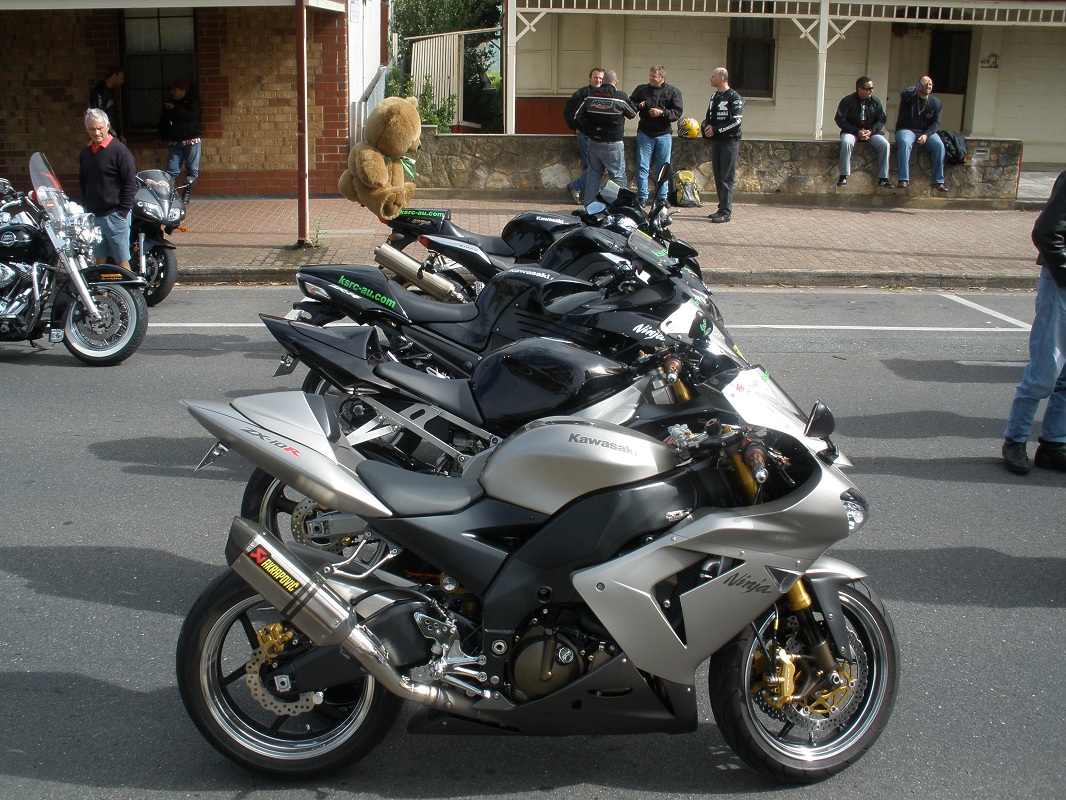 Good day was had by all. KSRC proud to escort Santa to Hahndorf....shame about all those chaps going through their mid-life crisis on their harleys trying to get in our way.....and thanks to George and Paul at Boltons Kawasaki, we had VIP parking on the pitch in the middle of the oval!
