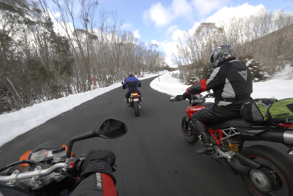 Mind you, I have done a ride into the snowfields...several times...during mid winter. It used to be an annual July event, to ride to the top carpark at Lake Mountain. The toll operators were puzzled as to if we required chains and if we were allowed, so we just used to skirt around it and keep going believing in the forgiveness before permission motto. Several times we had to help push bikes back out of the carpark afte we had gone tabogganing. Back then, winter gear was nylon dryrider jacket and pants and rubber over boots. So that also doubled as ski wear once at the top!