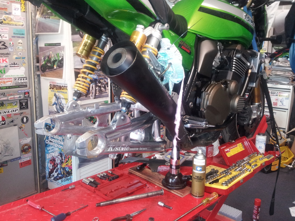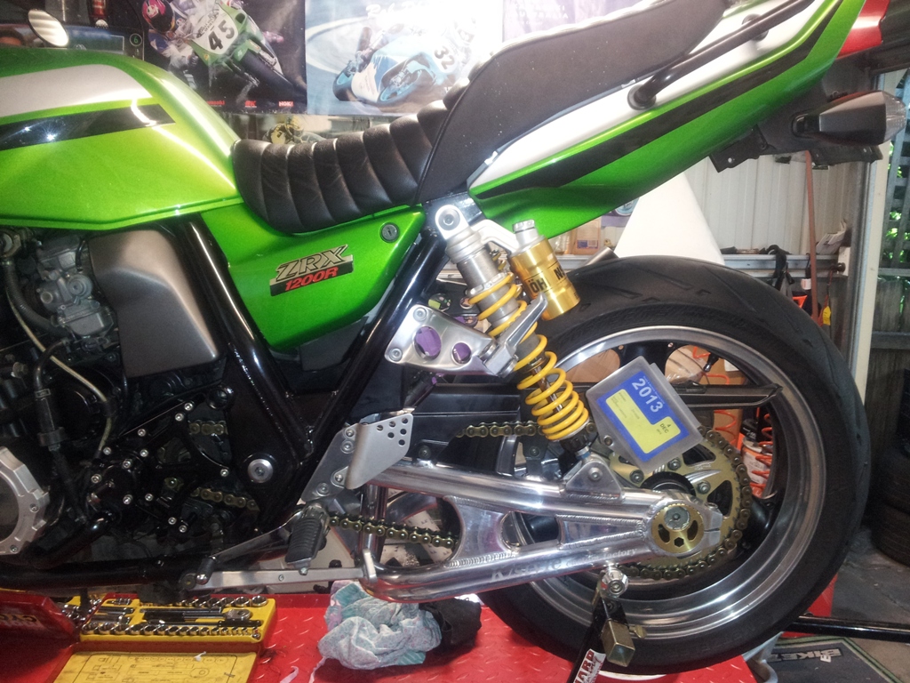 Of a nice big box from Japan sitting in my garage, I finally got all the planets to align and my swingarm is now on the ZRX.