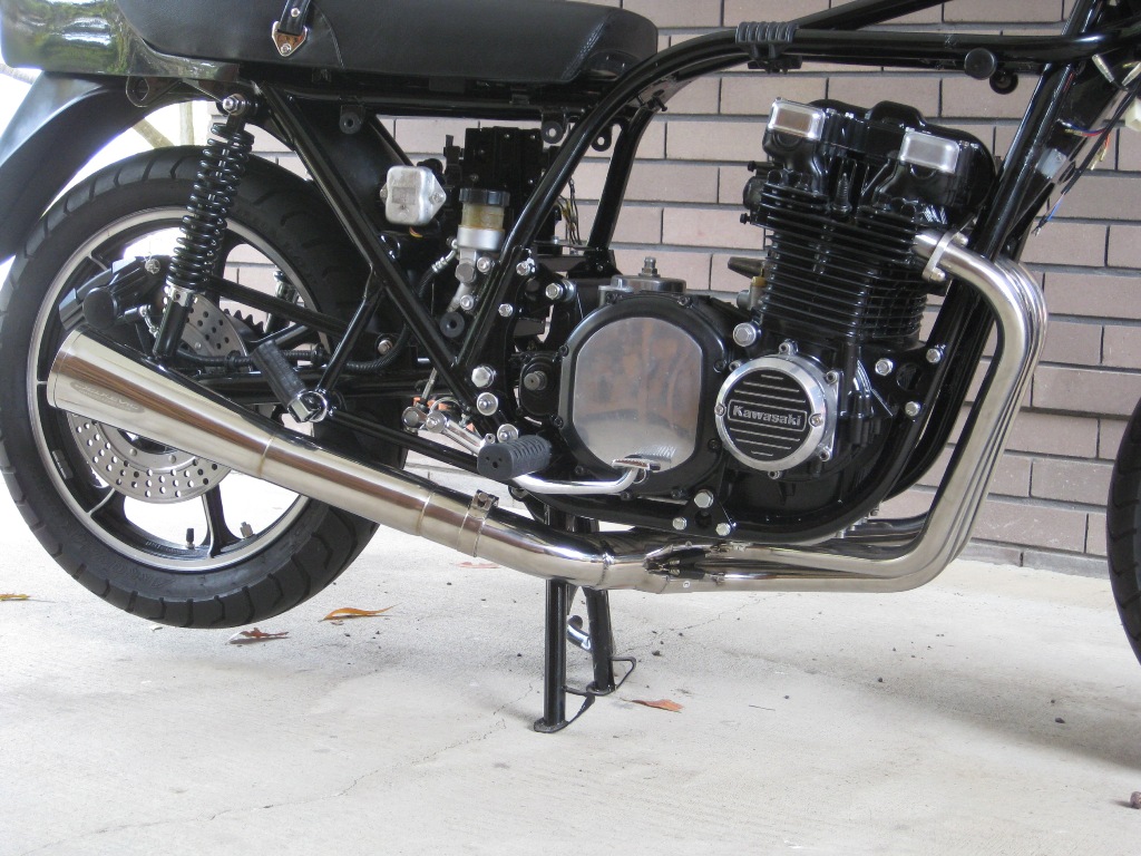 Anyone fitted a Delkevic SS 4:1 to their Zed? I'm looking at getting one to replace the bodged original on my Z1-R. The UK website http://www.delkevic.co.uk doesn't list one for the Z1-R but maybe can use the Z1000A1/A2 one with some mods to the rear bracket....? Looks pretty nice - and quite cheap ($399.95 incl freight!) . The Oz agent is chasing some answers for me regarding retaining the centrestand and if the Z1000A1/A2 system can be adapted to the Z1-R. (NB these systems allow access to change oil/filter iwithout having to remove the exhaust.) Cupla pics forya attached.