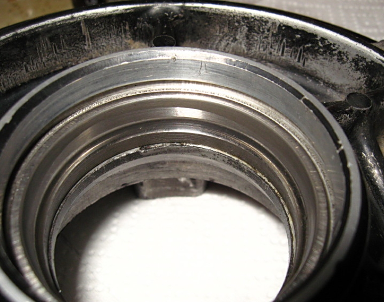Closeup: Getting the remnant of this bearing out will be umm, "interesting", no thanks to insufficient design.