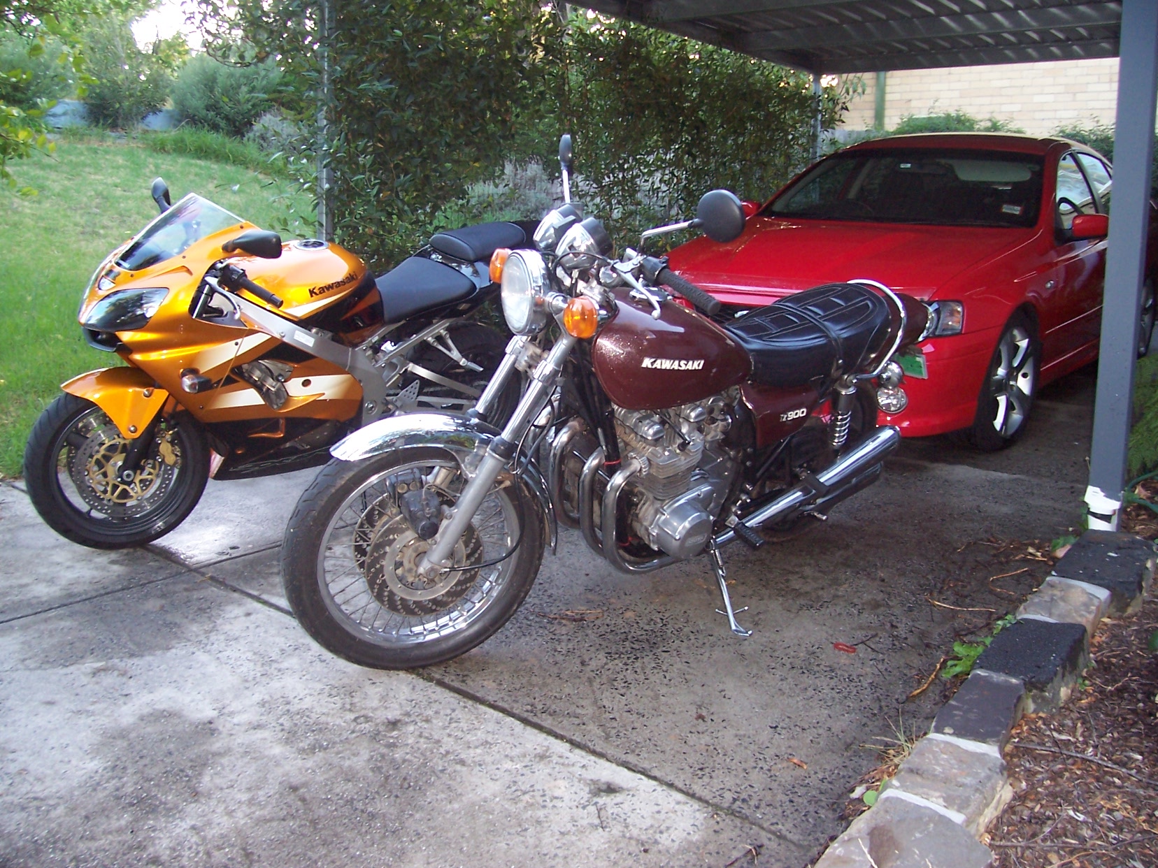 I guess you can't really tell it is a Kawasaki in the shot, but this is a photo of my ride last Sunday to Mt Mee/ Maleny. I thought it was a beautiful picture. My bike is fourth from the left of the picture, and I am the one in the red top sort of leaning on the post.