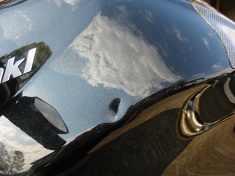 The insurance company didn't want to pay for a new tank as the dent isn't that big, and said they would fix it only. I was pretty unhappy about that as I wanted the bike back to how it was, not repaired