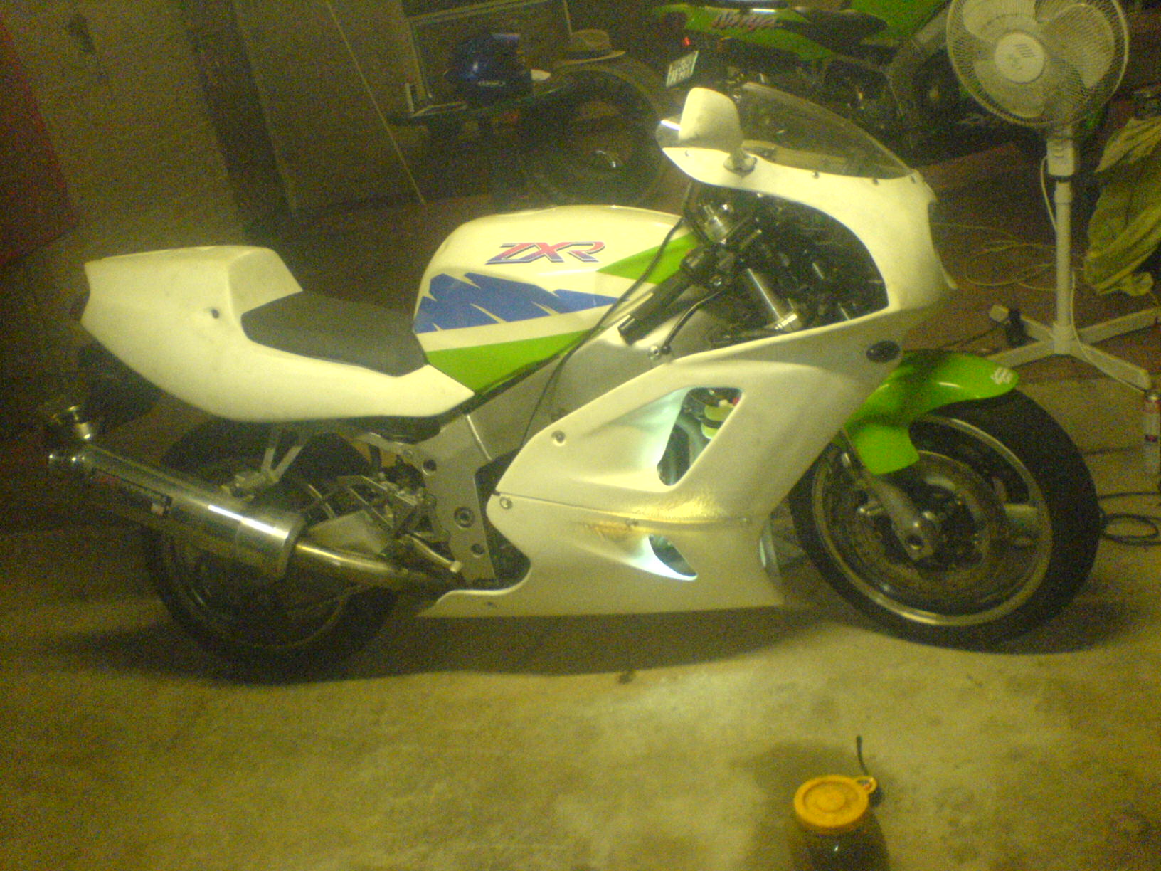well the glass is on but unpainted jettings been done yoshi pipe and after market indi's also on, now just gota fit the V2.
