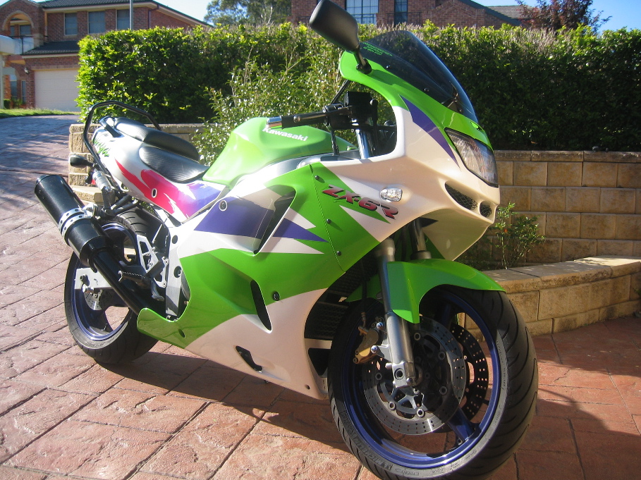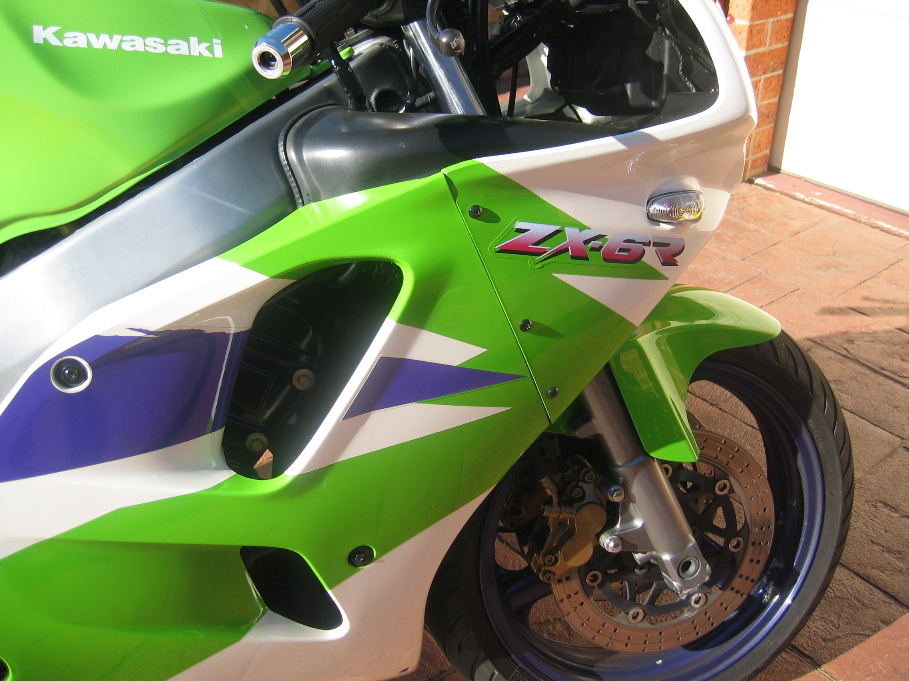 I stripped it back to the frame and motor, and removed the sump for an inspection. All good there and I concluded the 13,000 k's on the clock to be genuine. I have cleaned, and painted every part I could get my hands on and replaced anything that didn't work or was missing with a genuine part. I was fortunate to find a full set of fairings that only meant I had to spray the tank to cover the yellow with Kawasaki green again. The only mods I have fitted are a Slipscreen 'double bubble' windscreen and a set of R&G Racing crash knobs with a replacement radiator water bottle.