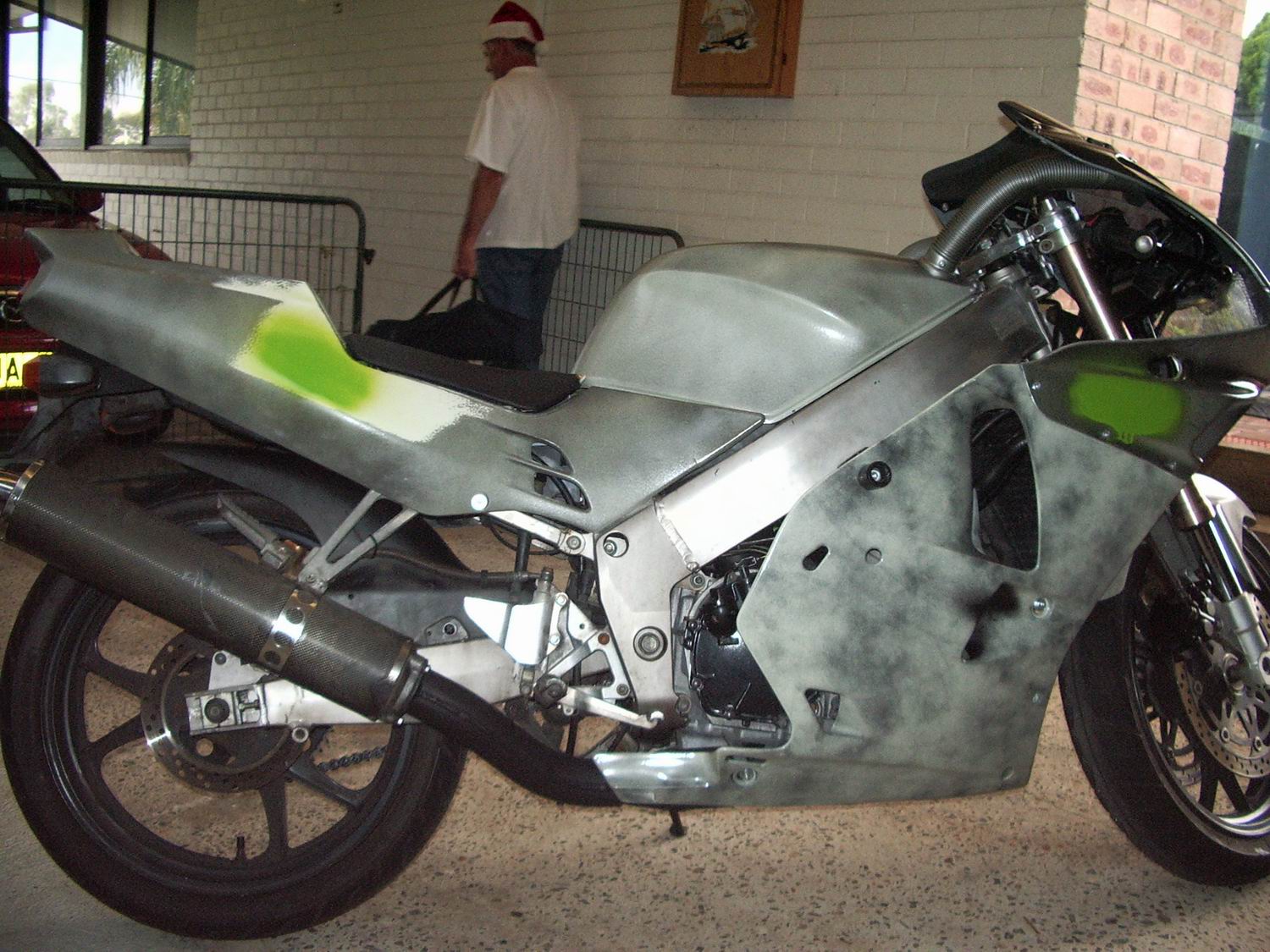 after sanding and painting and fitting half to fairing and removing wheels to change tyres and brake pads etc etc