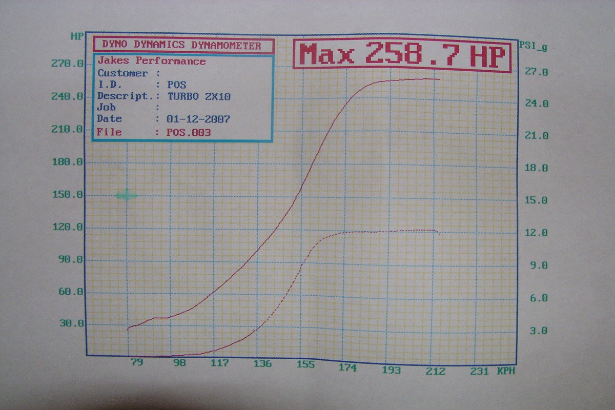 The chart says ZX10 which is the 1988 not later model its really an RX not ZX10 and the speed is for 2nd gear as the dyno max's out at 250